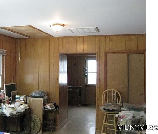 One floor living, 2 bdrms.,(Den could be made into a 3rd bdrm.)1 stall garage in the cellar,w/workshop space & a 4 stall garage all on 1.4 acres. New windows,some hardwood flrs.,handicap shower. Plenty of closets. Special use room is a mudroom from the back door. Generator connection installed. Because of the proximity of the well to the septic & leach field,this property will not qualify for FHA & USDA loans.