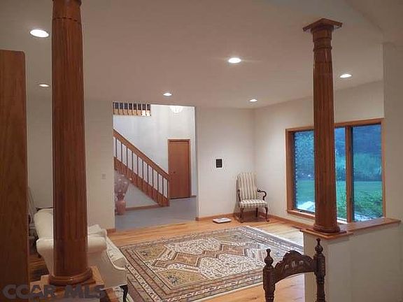Private, Serene, Spectacular. Architecture, scenery & landscaping have merged gracefully to create this alluring all brick contemporary home. The first floor offers a grand 2-story foyer looking up to the loft, Great room with vaulted ceiling & cozy fireplace, gourmet eat-in kitchen offers a walk-in pantry, breakfast bar & plenty of cooking space, formal living & dining rooms perfect to entertain family & friends, sunroom, den/office with a built in desk, 1st floor master suite boasts 2-closets, jetted tub & dual vanity. The second floor has a loft, 2 bedrooms & a full bath, additional storage above garage. The finished walk-out lower level features a large rec room, exercise room, 2 spacious bedrooms & a full bath. Numerous custom touches thru-out, adjacent to State Game Lands, framed by elegant landscaping this unique property is simply entrancing.