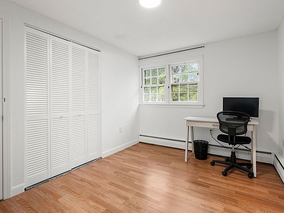 Your chance to own this affordable two-bed, 1 bath townhome with a low condo fee in the desirable Redstone Condominium complex in Acton! The first floor features a spacious and open floor plan with hardwood floors and gorgeous wooden beams along the ceiling. The kitchen has been refreshed with new flooring and countertops and offers tons of storage space! Upstairs includes two bedrooms & a full bath. The main bedroom includes a closet hallway with a washer and dryer that are being left for the new owner(s). Step outside your back door to your fenced-in patio area with plenty of space, privacy, and jumbo storage shed. This is a rare opportunity to live in Acton with its renowned school systems and just a minutes walk to shops, restaurants, bank, school campus, playgrounds & ball fields. There is abundant storage in the pull-down attic!