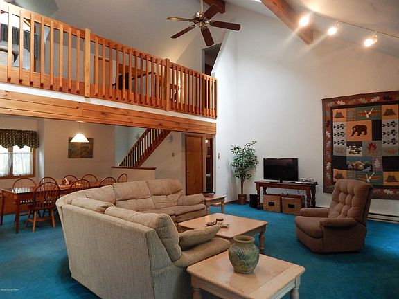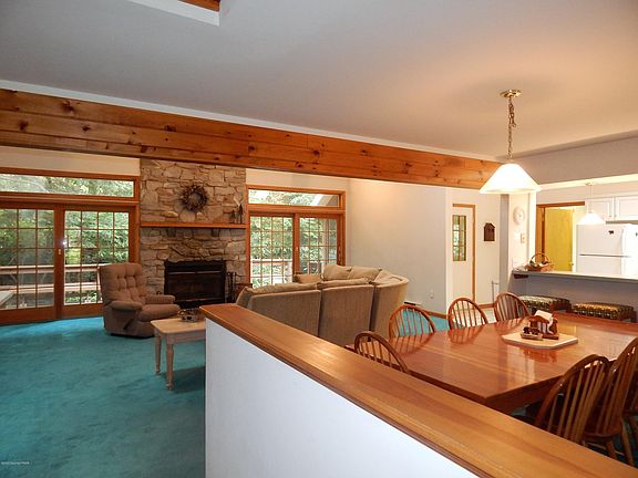 CONTEMPORARY HOME offering 4 bedrooms, 2 baths, LARGE SCREENED PORCH and Private REAR DECK. Take a look at this light and bright contemporary located only steps from the entrance to the LAKE NAOMI pool. Home is on the COMMUNITY SEWER system! GREAT layout with 2 bedrooms on each floor, good-sized LOFT AREA, 1 car-attached garage. HANDICAPPED accessible with side-entrance ramp into mud-room laundry and oversized hall-ways on main floor. Beautiful STONE fireplace in living room flanked by 2 Sliding Doors leading to deck. Large dining room table comfortably seats 10 with a removable leaf - great for larger gatherings! Over garage storage area which possibly could be finished off to even more space. Home is being sold furnished and ready for you!