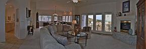 You'll feel the solid quality of this attractive & comfortable home in The Ranch at Prescott, AZ.Panoramic views from Granite to Mingus Mt, wide covered deck & multitude of windows. Over 1/3ac lot, circular drive. True GREAT RM w/ vaulted ceilings, corner stone firepl, huge dining area w/ curving wall of windows & window seat. Spacious kit, big island, pullouts, walk-in pantry. Garage workshop area. Architectural appeal - barrel arches, niches. Lower level could be in-law w/huge fam rm,bdrm/bath