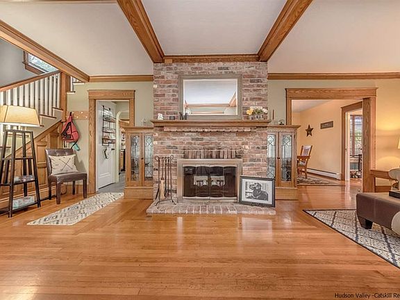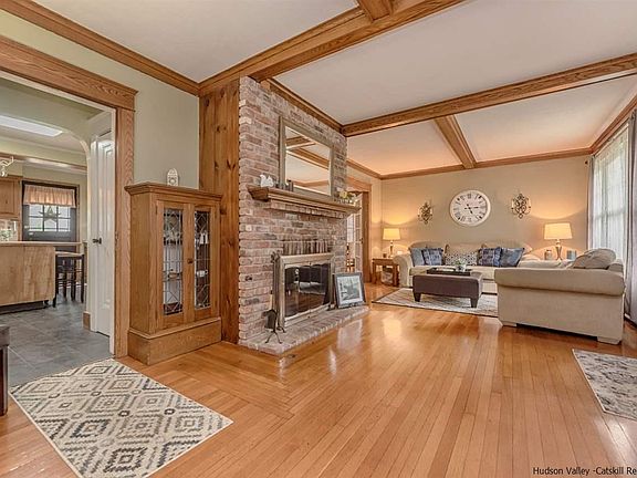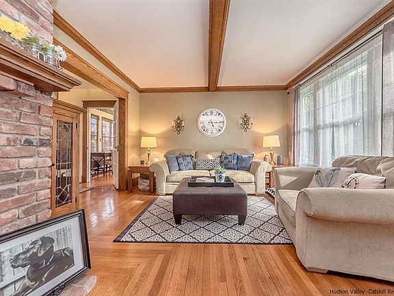 City of Kingston three bedroom 1 1/2 bath old style two-story located in Roosevelt Park. As you open the front door and step inside you will be greeted by the gorgeous brick wood-burning fireplace with wooden beams that accent the living room this in conjunction with the gleaming hardwood floors will immediately draw you in. Off to the right back corner is the large dining room perfect for all of your family dinners. Sun drenched Florida sunroom is perfect for catching up on all your reading or just to hang with your morning coffee draws the outside in. Large kitchen with center Butcher block island along with plenty of wood cabinetry is sure to please any chef. Upstairs you will find three spacious bedrooms along with the large bright bathroom. Out back you will enjoy the fenced in backyard with mature landscaping and the one car detached garage. This home has been lovingly maintained and taken care of over the years. A true delight to see.
