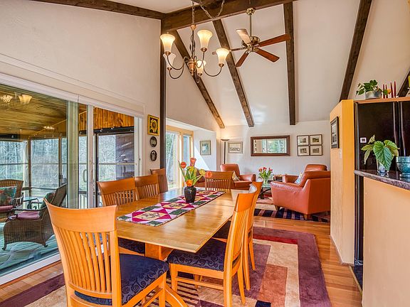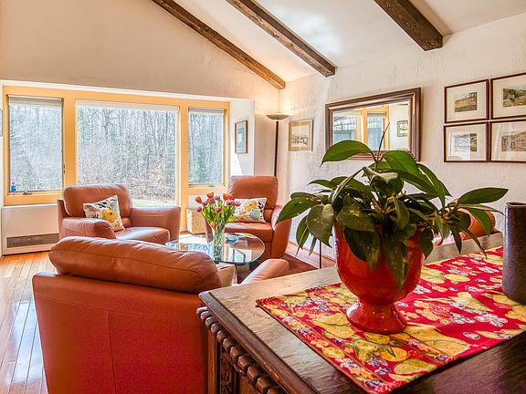 LOCATION, LOCATION, LOCATION WITH INTIMATE HOME AND IN LAW APARTMENT OVER GARAGE - Great Franconia location tucked up the hill away from it all with the solitude you may have dreamed of in the White Mountains. Drop down the hill and you are in Franconia heading to Cannon, Littleton or Bethlehem in minutes. The small but efficient and open galley kitchen oversees the dining room and living room that has seen its share of dinner parties. The space has character featuring a cathedral ceiling with exposed beams and big sliding glass doors flowing into a large 3 season porch or out to the back deck. The primary bedroom is light and bright with a freshly updated bathroom and a spacious office across the hall. Downstairs you will find 2 additional bedrooms with trim and built-ins, a 3/4 bath with walk in shower and a large family room with walkout to the amazing outdoor space. Beautifully landscaped yard with multiple perennial gardens, your own private pond and a tree house with bunks. You'll love the feel of the mountains and viewing wildlife from your own sanctuary. It's a lifestyle. Come and enjoy.