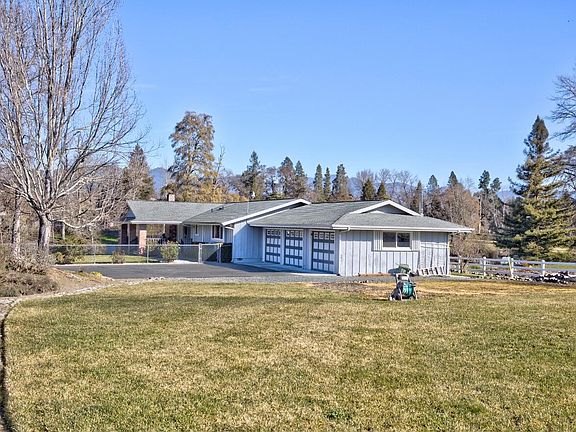 Love at first sight. One of the best views of the Rogue River you will ever see. Low bank, not in flood plan and great fishing. This 1664 SF home, on 1.1 acres, was built in 1981 and has 3 bedrooms ( one bedroom has a murphy bed which is included). There is a new large $32,000 wrap-round deck. The exterior of home has just been painted. There has been a recent home inspection done and repairs were made. Recent well testing showed 17.9 GPM. Home is on city sewers. Features of home include a fireplace in the living room, kitchen with Corian counters, a separate laundry room. double pane, UV Tinted vinyl windows, 3 car garage, one bay being used as shop, RV parking area available, large garden area with separate irrigation system, property partially fenced. District 7 Schools, fenced in area for dog along front and side of home. Irrigation with GPID. Some of the pictures will show with old deck.