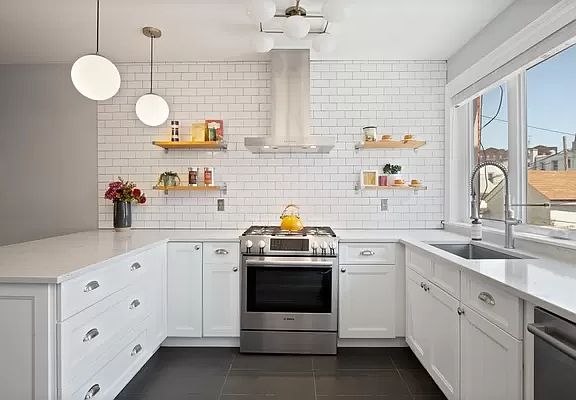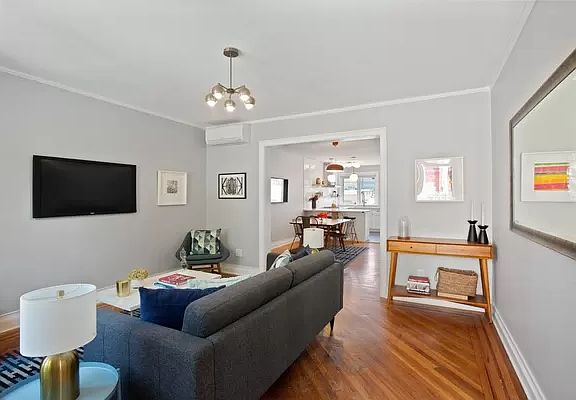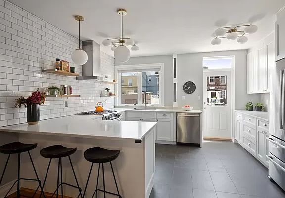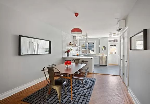 Recently renovated to perfection, this lovely turnkey Kensington three-bedroom home provides plenty of space to expand and boasts A PRIVATE PARKING SPACE and a sweet garden out back. On a quiet and charming tree-lined street, 274 Parkville is one of six brick rowhouses built in the 20s, each with two-stories and an English basement. A mid-block driveway takes you to a private alley lined with garages and parking spaces for each home. Up the front stoop, a separate windowed entry welcomes you into the home. The spacious living room has two large windows overlooking the greenery outside and fit with new custom shutters. The open plan carries through to the dining room and into the well-appointed kitchen. With white cabinetry, Caesarstone counters, classic subway tile, slate floor tile, open shelving, and a suite of Bosch stainless steel appliances, including an externally vented range hood, the kitchen has a ton of storage and workspace, plus a breakfast bar with seating for three. The oversized south-facing kitchen window brings in beautiful light and overlooks the garden below. A second bath or powder room could easily be added in what is currently a large closet off the kitchen. Down the stairs is the open English basement where you'll find the new washer and dryer. With ample ceiling height, large windows that bring in abundant natural light, and a wide-open layout, this fabulous space is just waiting to be (easily) converted into a den or rec room. On the third floor, at the top of the stairs, you'll find two bedrooms, each with a sizable closet and large window. Beautiful light pours in through three large windows in the primary bedroom which spans the width of the front of the house. The bright and airy bathroom features a large skylight, subway tile and modern chrome fixtures. Throughout the home you'll find custom lighting and window treatments, high ceilings, classic moldings, gorgeous horizontal hardwood floors with walnut inlay, and split system ductless AC units. Near the F, D and Q trains, and two blocks from the commercial offerings on Coney Island Avenue, the location is super convenient. Reach out to make an appointment to see this fantastic move-in-ready home!
