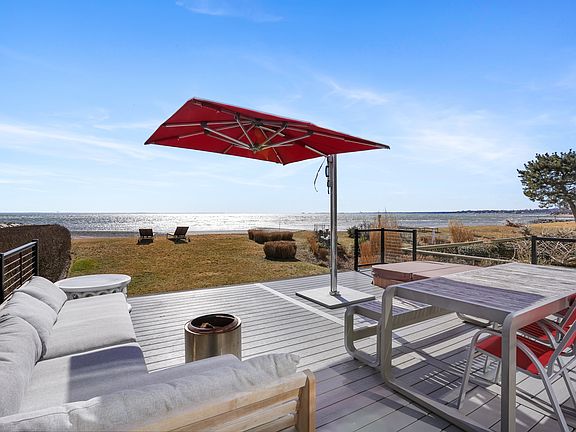 This slice of heaven features 2 BRs, 2.5 BAs, plus a detached studio apartment with a full bath. This modern architectural masterpiece, designed by Roger Ferris, has breathtaking views and an abundance of natural light, courtesy of the expansive floor to ceiling windows in every room. The dreamy primary bedroom has panoramic water views with the Manhattan skyline in the distance. The second bedroom contains a loft which provides two separate, private sleeping nooks and a lounge area with two-story, floor to ceiling windows. The detached studio apartment makes an ideal option for guests or extra recreational space with a wet bar, shuffleboard table, and loft. The spacious exterior offers ample yard and deck space directly on the water for abundant outdoor living opportunities. Walk to the sandy beach from your yard at low tide or stroll down your sleepy street to the beach access path. This unique home's private, tranquil, waterfront setting makes it hard to believe it is so close to town, Metro North, and 95 for easy commuting, shopping, and dining in beautiful Fairfield. $20,000/month, June-Aug or July-Aug, $10,000 security, credit check and application required,