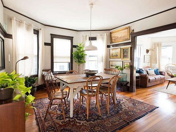 Beautifully renovate two bedroom with sun filled office. Extraordinarily charming front room has bowfront window and large balcony over the front porch. Secure, cheerful living near Roslindale Square. Be close to all restaurants and shops in the center of Roslindale and enjoy the Farmers' Market on the weekends. Well maintained, century-old home with elegant stained glass windows at entry. Bright second floor unit offers spacious living room with lots of windows leading into dining room with built in china cabinet. Eat in kitchen with renovated cabinets, gas stove, dishwasher and extra-large pantry. Gleaming hardwood floors throughout. Enjoy the private back porch overlooking the landscaped, shared backyard in the summer. Basement has storage space and shared washer dryer. There is plenty of on-street parking. Great commutable location, near bus lines that go to Forest Hills and close to the Commuter Rail. Short distance to Arboretum, George Wright Golf Course, Roslindale Village. Available for July 1 or August 1. No cats, dogs only with some restrictions ( ask agent). First month rent, last month rent, one-month security deposit and one month rent broker fee to move in. Tenants pay their own utilities. $9800 to move in: First month rent, last month rent, security deposit and one month rent broker fee.
