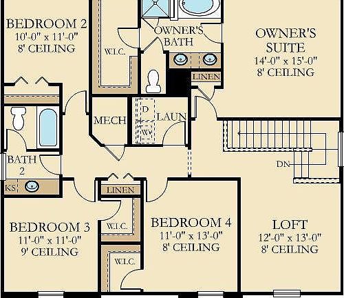 -Master bedroom and 3 secondary bedrooms with an open loft and laundry room upstairs.