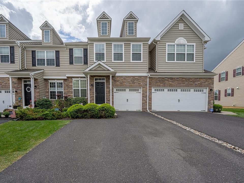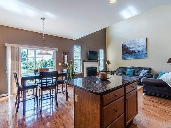 Step into this inviting townhouse with many beautiful features. The formal living area is adjoining the formal dining room, which then flows into the spacious kitchen with center island and granite countertops. The open concept kitchen leads into the two story family room creating an ideal entertaining space and has an abundance of sunlight. Access the maintenance free deck through the sliding glass doors from the breakfast room. Beautiful fixtures and finishes are evident throughout this home, including a gas fireplace and hardwood floors throughout the first level. Upstairs you'll find a gorgeous master suite complete with cathedral ceilings, his and hers walk-in closets, and a lovely master bath with tiled shower and soaking tub. Two additional spacious bedrooms, guest bath, and laundry complete the second floor. The finished basement having a half bath makes for the perfect rec room. Fantastic location near major roads and plenty of amenities. Well maintained with so much to offer!
