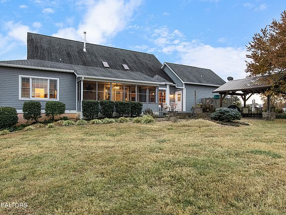 East Tennessee Equestrian Estate with stunning Mount LeConte views- 3 pastures on 10.22 acres with 3 barns. A once in a lifetime opportunity to own a horse farm in this private exclusive equestrian community . Located in River Ranch Subdivision - offering the best combination of location, land, and amenities. Just 20 minutes from downtown Knoxville, shopping, dining, and healthcare. Capture year-round views from inside and out on the front covered porch. Spend days and nights by the custom-built Gazebo. Host family and friends in the screened in back porch. Fly fishermen enjoy some of Tennessee's best tailwater trout fishing on the famous Holston River along the banks of River Ranch Subdivision. This custom farmhouse home features exquisite wide plank heart of pine flooring throughout the spacious main floor. ADA friendly wide halls and doors contribute to the beauty and function of this immaculate 2 story farmhouse. The large eat in kitchen is designed for holiday cooking. Cook a feast in both the wall mounted and regular ovens. A spacious island with integrated sink offers room for everyone to enjoy. The large formal dining has a wood burning fireplace and mountain views. The main level provides a large study with closet space. This main floor provides 2-3 bedrooms and 2.5 bathrooms, while upstairs offers ample quarters for any number of guests. The upstairs layout has a full bath, the large ''Bunkhouse'', and yet more space for play, sleep, or quiet reading after a full day on horseback. One of the three Barns is equipped with a full active Solar system able to power the entire home. The water is utility provided, so there is no well maintenance with which to contend. Efficient, beautiful, and cost-effective living. Come and see for yourself the care and attention to detail of this amazing Tennessee equestrian property. Contact us for a private showing today.