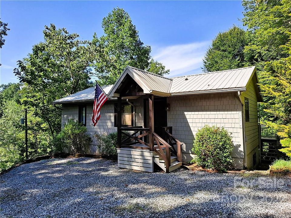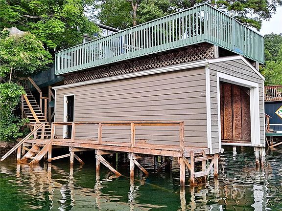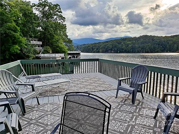 Charmingly updated & secluded 2BR + flex/guest room, 2BA mountain retreat, + 3 add’l parcels, 1 lakefront w boathouse & lift, across the street. Enjoy your morning coffee, soaking up mountain & lake views from 1 of 2 decks exuding peace & calm. The add'l lakefront parcel is on a secluded deep-water cove, ideal for jumping into the crystal clear, fresh water. Stunning views of the rock-faced mtns w/ a glimpse of Chimney Rock from the spacious boathouse sundeck. Updated kitchen w abundant counter space, living room w vaulted ceilings, dining area, and a BR suite w/ an updated BA, all on the main level. The lower level has a large BR w/ an attached dressing area & renovated new BA, an add’l flex/guest room w bunkbed, ½ BA & laundry area. Level parking & access into the home. An outbuilding stores the golf cart (included) & makes zipping to-and-from the boat house a breeze. This is what lake life is all about! Recently serviced septic tank. Radon mitigation installed. Available turnkey.