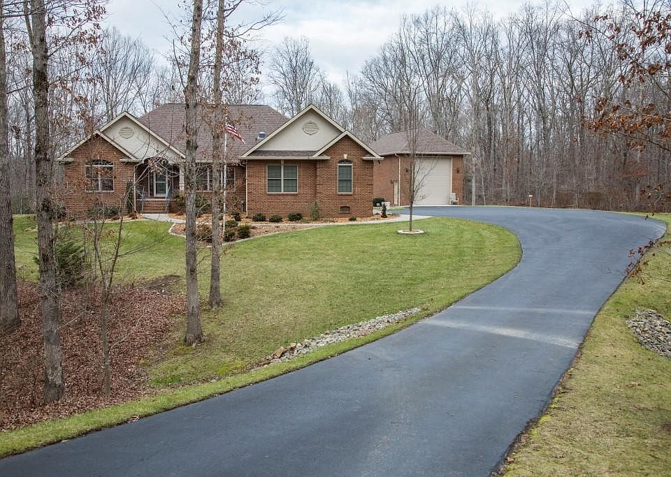 This setting is incredible and so hard to find. You want to be close to town (this home is 5 minutes max) yet have privacy. From the moment you pull into the tree lined driveway, you appreciate the beauty of this property. And wait until you approach the home. It just gets better. All brick custom built Ronnie Wyatt home with over-sized attached garage and an all brick 17' x 45' RV Garage. Even if you are not an RV'er, imagine this workshop space available. Inside the home you'll find appointments you would expect along with 3 bedrooms and an office with beautiful custom built-in shelves. And when you see the master bedroom and master bath you'll know this home is the one!!!!!!!