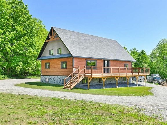 229 ACRES!! Plus a custom built Log home with over 3400 sq ft of finished floor space make this one a rare find. A long driveway to the house lends lots of privacy and gives you lots of future options with your back country getaway. 2 separate entrances to main level, including front entry from the full length 55x12 deck and back entrance into kitchen area. Main flood features an open concept K/DR/Great Room with cathedral ceilings, plus 2 bedrooms and 4 pc bath. Loft area overlooking the great room would make for a great studio, bedroom or lounge area. Full basement offers a rec room, 2 bedrooms, full bath, laundry room, plus a mudroom and large utility/storage room. Explore the trails around the property and potential to see deer, elk, moose, and more! Located between Toronto and Ottawa with easy access off Hwy 7 between Tweed and Madoc. Lots of lakes in the surrounding areas and extensive trail system along the Trans Canada Trail system for ATV or Snowmobiling not far away.