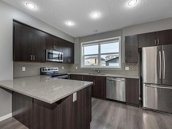 Welcome to 274 Redstone Drive NE, a beautifully maintained half-duplex offering 5 bedrooms and 4 bathrooms in the vibrant community of Redstone. Upon entry, you're greeted by a spacious foyer that leads into an open-concept main floor filled with natural light, creating a warm and inviting atmosphere. The modern kitchen is equipped with quartz countertops, a tiled backsplash, and ceiling-height cabinetry that provides ample storage. Upstairs, the generous primary bedroom features a private ensuite, complemented by two additional well-sized bedrooms and a full shared bathroom. The fully developed basement includes two bedrooms, a second kitchen, separate laundry, and a full bathroom—ideal for extended family or potential rental income. Outside, the low-maintenance backyard is finished with artificial turf, perfect for relaxing or entertaining, and the fully fenced yard ensures privacy and security. This home is conveniently located near shopping centers, parks, schools, and other essential amenities, with quick access to Stoney Trail and Calgary International Airport.