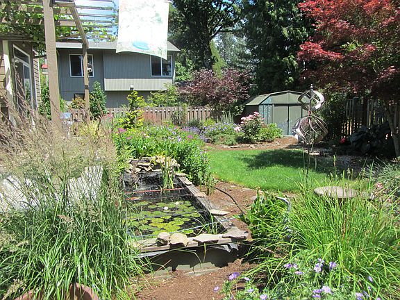 This lovingly maintained home is a gardening enthusiast's dream! Private lot sits back off the road. Oversized garage has 11' ceiling & shop area. Gorgeous landscaping front & back w/koi pond & flowers galore. Den/office has large closet & could be MBR on Main. Abundance of natural light, open floor plan, spacious rooms. Gourmet kitchen with island, pantry, newer SS appliances & nook. Brand new 30 yr roof.
