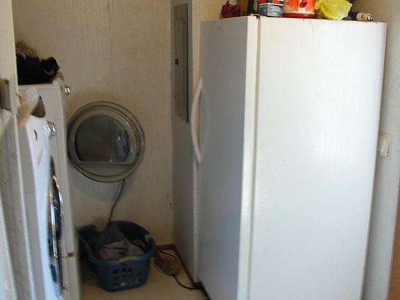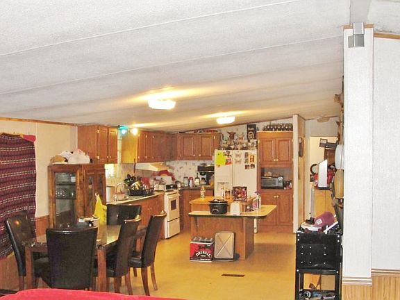 Nice kitchen, fireplace, cathedral ceiling, new 1 year old metal roof, new tub and shower, side by side refrigerator and electric range included, all electric home, corner lot, dog pen and ramp stays, wooded setting.Has solar water filter system on city water.1/2 wooded, 1/2 open, nice trees.