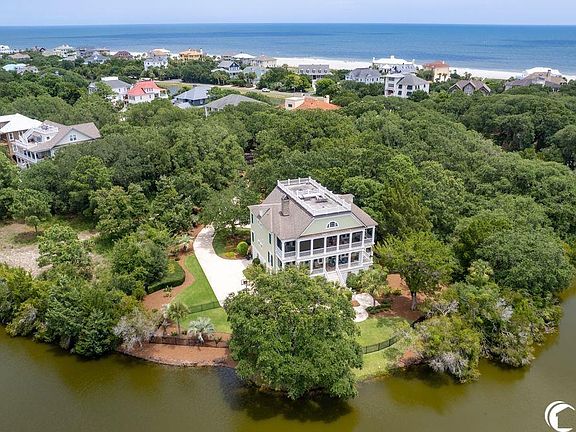 DeBordieu Colony - Sea Island - Come see this charming traditional FURNISHED lake front home located on a beautiful landscaped cul-de-sac home-site on Sea Island Drive. This raised beach style home is an inverted floor plan with 3 garages and ample storage on the ground floor. 3 guest suites, guest den, workout room/office/game room, guest kitchenette, and guest porches on the first raised floor. The second floor is home to the large kitchen, new appliances, granite counter tops, adjacent to the formal dinning room the opens to the large family room. Also on the level is the Primary suite with a huge master bath, closets, and dont forget the 3 stop elevator. The 3 raised floor offers 2 bunk rooms, and a full bath as well as a fantastic roof top hatch to a huge entertaining space. Other features include Tankless hot water heaters, multiple fireplaces, and a wet bar, just to name a few. This is a very stunning setting setting and would be a fantastic primary residence, 2nd home or blended rental. DeBordieu Colony is an oceanfront community located just south of Pawleys Island, South Carolina featuring private golf and tennis, multiple dining facilities, fitness, saltwater creek access to the ocean, a manned security gate, and luxury homes and villas surrounded by hundreds of acres of wildlife and nature preserves.