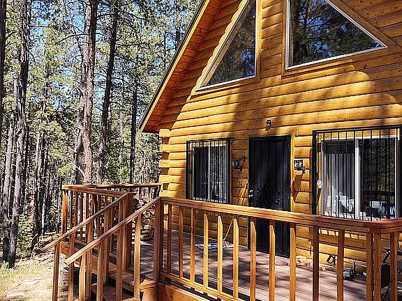 Off-grid cabin bordering national forest and within walking distance of fly-fishing stream/river. Started building in 1999 and finished in 2021. Elk, bear, turkey, and deer are seen regularly in the area. The nearest town is 17 miles away and there is no cell-phone reception at this location. House is currently wired for satellite TV, telephone, and internet. Built using log construction and is heated by wood stove only. Average annual snowfall is between 10 and 15 feet based on the owner's yearly measurements. House is completely off the grid with solar and wind power, and a gasoline generator for emergencies. It has a deep-well that is 80 feet underground and 20 feet below water level. It has a 500-gallon septic tank. Security is provided by a sophisticated, one-of-a-kind, electronic security system with micro-pulse radar that detects motion through windows and walls. It also talks and barks to warn off anyone who gets too close. If you enjoy trout fishing, the Rio de la Vacas is a 10-minute walk from the cabin and is rated one of the 10 best fly-fishing streams in New Mexico. All 6-acres are wooded with pine, spruce, and aspen trees. Warning, this house cannot be left unattended all winter; the batteries must remain charged to prevent freezing. Sell price includes appliances, furniture, generator (fully furnished).