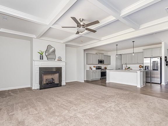 Welcome to this stunning 4-bedroom, 3.5-bathroom home nestled in the desirable Panther Creek subdivision. This like-new property combines elegance with everyday comfort, featuring an open floor plan designed for seamless living and entertaining. Beautiful luxury vinyl plank flooring flows throughout the main level, accented by coffered ceilings that add sophistication. The bright, airy kitchen is a chef's delight, featuring quartz countertops, soft-close cabinets, stainless steel appliances, a smart refrigerator, and a spacious kitchen island. Just off the kitchen, the open family room invites you to relax by the cozy fireplace and provides direct access to a large screened porch, perfect for enjoying the outdoors year-round. Retreat to the first-floor primary suite, complete with a large ensuite featuring a walk-in shower, soaking tub, dual sinks, and a roomy walk-in closet. A conveniently located mudroom on the main level adds functionality and ease to your daily routine. Upstairs, you'll find three additional bedrooms with bathrooms that feature stylish double quartz sinks, a versatile loft space, and a large bonus room ideal for a media room, playroom, or home gym. The home also includes a finished garage with durable floor coating, overhead storage, and a built-in Tesla wall charger. Move-in ready, the home comes with a washer, dryer, and all kitchen appliances, making settling in a breeze. This home beautifully blends style and convenience in the heart of Panther Creek—your ideal retreat awaits!