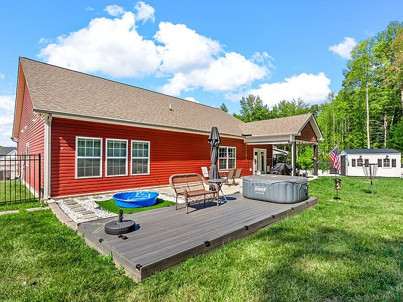 Built in 2021 with CUSTOM upgrades. Owner occupied for 3 years before listing as a rental! Almost every room has been upgraded beyond builder basic amenities. Owner spent over $20k in the backyard: Fully fenced with black aluminum, xl gate on the side, huge concrete pad, composite deck extension with electrical ran for hot tub, garden, and storage shed. The largest lot in the subdivision at the end of the cul-de-sac. Office includes $7k in upgrades with queen murphy bed built-in and custom bookshelves with soft close drawers. 2nd bedroom has custom accent slat wall and custom closet built-ins. Primary Bedroom has a bath tub, walk in tiled shower, and barn doors. Kitchen has a massive island with seating for 4, a farmhouse sink with additional accessories, walk in pantry, and new light fixtures. NO CARPET in the house with LVP throughout. Laundry mud room off the garage with utility sink and built ins. Agent is also owner. Questions? Just ask!