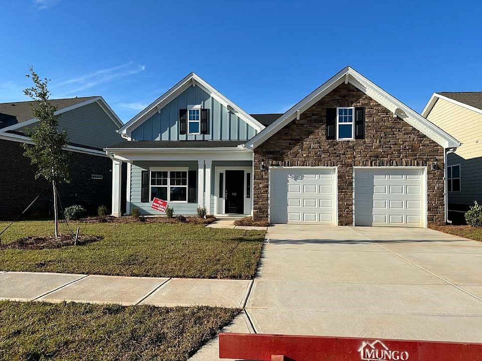 This Hartford has three bedrooms and three-and-one-half baths with two primary suites on the main level and the third bedroom and full bath upstairs. A vaulted entry foyer leads to the gourmet kitchen and spacious dining area with a 12'' flat ceiling and crown molding trimmed beams. The great room has vaulted ceilings and gas fireplace. Both primary bedrooms have private alcoves with linen closets and the main primary suite includes large tile shower. Luxury vinyl plank flooring is throughout most of main living area. There are many decorator touches including greyhound cabinets, GE Dual Fuel Range and quartz countertops in the kitchen. Stone accents at the garage and a covered back screen porch with a fireplace.