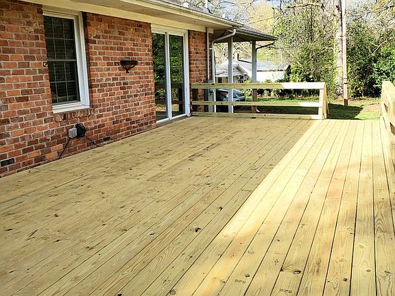 Three bedroom, 2 bath brick ranch with large yard located on Twin Lakes. Huge back deck (newly rebuilt!) and expansive back yard perfect for entertaining all spring and summer long! Large bay window in front living room with plenty of space and access to back deck. Central air and gas heat with gas log fireplace. Stove, dishwasher, and refrigerator included. Washer and dryer present but not warrantied. There is an attached double carport as well as a huge, detached and wired garage with tons of storage space. Perfect for a hobby workshop! Detached garage and outside storage building is being leased in as-is condition and is not approved for vehicle storage and is not warrantied. Great family home! This information is deemed reliable, but not guaranteed.