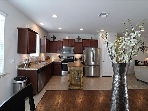 Beautiful single story home blt in 2015-grand, warm & inviting with recessed lighting, high ceiling, open kitchen, dining, & living-room concept. Stainless steel appliances! Large master bedroom with large walk in shower. Home feels much larger than sq ft. An added bonus is the sidewalk leading from the house to the large open patio in the huge backyard. No backyard neighbors! Home is well kept, move in ready and shows like a model! Center island, washer, dryer, and fridge convey with full price offer!!!