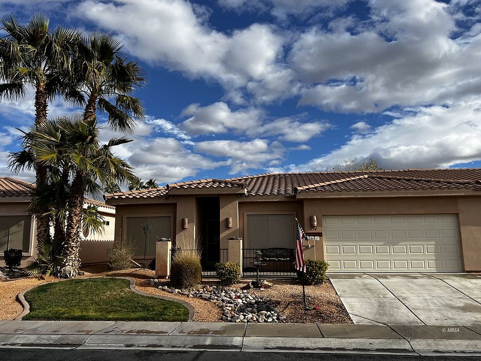 Don't miss out on this beautiful 1419 Sq Ft Chardonnay Townhome!! Nice open floor plan featuring 3 Bedrooms, 2 Bathrooms plus a 2 Car Garage. Great Kitchen with Solid Surface Countertops, Tile Flooring, and additional built in Cabinetry in the Dining Room. Large Main Bedroom with walk-in closet. Guest bedrooms are located at the front of the Townhome which provides additional privacy for your guests. Living room and Bedroom flooring has been upgraded to laminate wood. Ceiling Fans throughout. Laundry Room has extra shelving. Covered Patio, Fully Landscaped and Enclosed Backyard make it great for Entertaining! New 6 person Hot Tub w/30 jets and Patio Heater are included. HOA Fees's are $114.00 per month. Includes Front and Side Yard maintenance, Road maintenance, Property Insurance. Chardonnay also has a Community Lot for your Desert Toy, RV or Boat for a small fee. Great location!! This is a "must see" home!