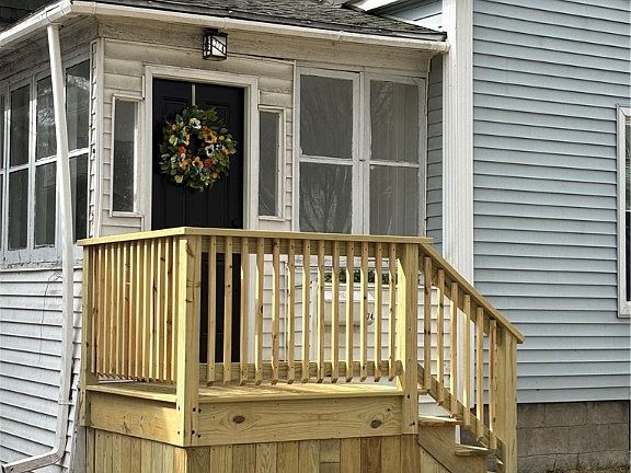 - Exterior features: Blacktop Driveway, Deck, Enclosed Porch, Fence, Porch