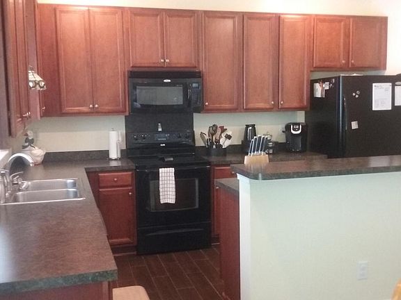 Look no further! Open floor plan! The kitchen features 42 inch cherry colored cabinets, a smooth top range and a kitchen bar area. The maintenance free downstairs tile flooring is throughout and has a rich dark wood like appearance. Sliders lead you out to a beautiful private, wooded backyard with a screened porch and a patio. Perfect for those summer gatherings. A detached garage/storage building can be found in the rear yard in addition to the attached 2 car garage. Upstairs you will find a laundry room, two full baths ( nicely tiled) and a large master bedroom with a nice sized walk in closet and ceiling fan. Master bath has a garden tub/shower. Home has been recently painted and is ''move in ready.'' Put this one on your list today!