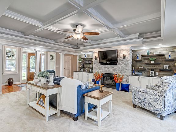 Wonderful custom home nestled on 5+ wooded acres within approx 1 mile of Lake Jordan. Spacious family room includes coffered ceiling, built-ins & stone gas log fp. Large formal dining has vaulted ceiling. Kitchen offers granite tops, custom cabs & s/s appliances (double oven). Vaulted sunroom. 1st floor primary suite with fireplace, dual granite top vanities, claw foot soaking tub & frameless walk in shower & large walk in closet. 2nd floor has bonus room w/ bar, full bath, flex room w/ closet & loft area. Plantation shutters throughout. New roof 2019. Huge screen porch. Expansive multi-tiered deck includes gas grill. Separate detached wired garage (perfect for workshop and/or boat storage). Large barn great for storage. Amazing privacy with panoramic wooded views.