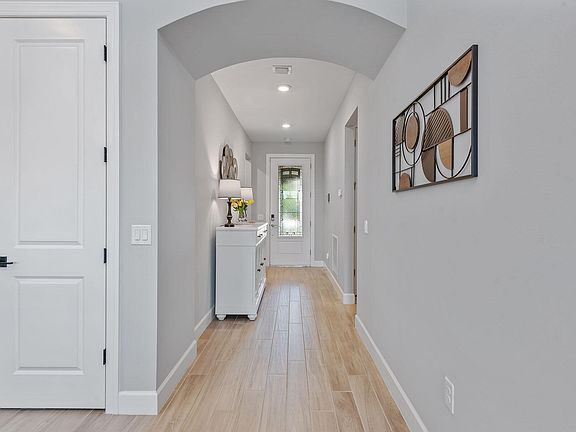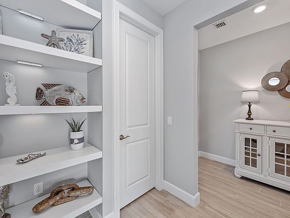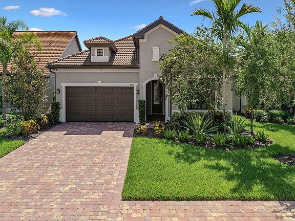 Welcome to paradise, where private lake views and lush tropical landscaping create a serene backdrop for everyday living in the sought-after Amaranda neighborhood of Fiddler's Creek. Built in 2021, this Abbeyville floor plan offers 3 bedrooms, 2 baths, and a 2-car garage, blending comfort and elegance in a peaceful eastern exposure setting. The screened lanai features color-changing sconces on the pool enclosure, a pavered deck, gas-heated pool and spa, ceiling fan, recessed LED lighting, and serene lake views, an inviting space designed for year-round outdoor living. An outdoor kitchen equipped with a Coyote stainless steel grill and hood, with rotisserie, composite bar top, stainless steel sink, and a striking tile backsplash creates the perfect space for entertaining. Impact-resistant doors and windows throughout the home offer enhanced storm protection and energy efficiency. Additional upgrades include a 24KW Generac whole-house gas generator installed in 2022 and a Kinetico water softener for added peace of mind. Inside, the open floor plan is adorned with grey wood-look porcelain plank tile and features electric blinds, recessed LED lighting, and a beautifully arched ceiling detail that draws you from the entry hallway into the living space. The open chef's kitchen is outfitted with white cabinetry, under-cabinet lighting, quartz countertops, a mosaic tile backsplash, large quartz island with pendant lighting, and Whirlpool stainless steel appliances including a five-burner gas range and French door refrigerator with center drawer. A walk-in pantry with wood shelving and a window above the sink complete this stylish and functional space. Adjacent to the kitchen, the dining area features a chandelier and sliding glass doors that open directly to the lanai, while the cozy living room offers coffered ceilings and a ceiling fan. The owner's suite offers water and pool views, a tray ceiling with a modern fan, and a spa-like bath with dual quartz vanity, framed mirrors, a walk-in shower with frameless glass, full porcelain tile surround, and a built-in bench. A spacious walk-in closet with custom built-ins adds convenience. Two guest bedrooms include ceiling fans, custom drapery, and built-in shelving in the closets. They share a beautifully appointed bathroom with a quartz vanity, frameless glass tub/shower combo, and floor-to-ceiling tile. The laundry room features a front-load Whirlpool washer and gas dryer on pedestals. The garage is finished with an epoxy fleck floor, suspended storage, water filtration system, and a mini-split HVAC system for year-round comfort. Residents have access to world-class amenities including fine and casual dining, a fitness center with classes and personal trainers, resort-style pools with waterfalls and slides, spa services, active tennis and pickleball, bocce, and a vibrant social calendar. Optional golf and beach/marina memberships available. Convenient to Olde Naples, Marco Island and all area attractions.