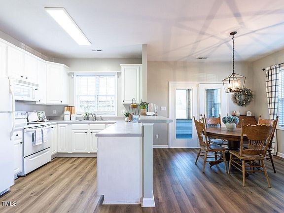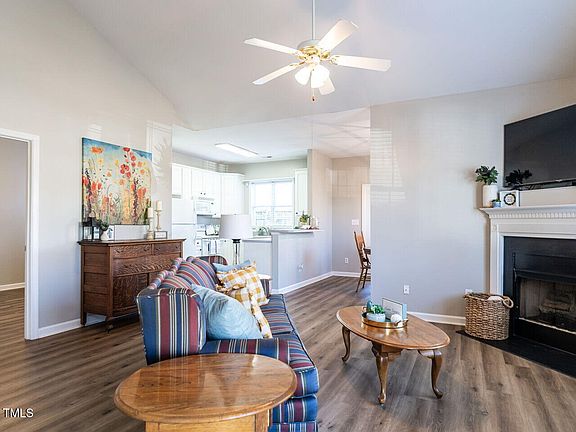 **Charming One-Story End-Unit Townhome** Welcome to this beautifully maintained, single-level END-UNIT townhome in east Raleigh! Perfect for those looking for convenience and comfort, this home offers the ease of one-floor living with a lovely view to a beautifully tree filled courtyard. Two generous-sized bedrooms with large windows offering great natural light. Open living room with gas logs and large kitchen/dining area. Newer LVP flooring. New 2024 HVAC! Also, the garage provides convenient access to the home, with additional storage space. Townhome community offers a pool, walking sidewalks and a beautiful courtyard with gazebo. Don't miss out on this fantastic opportunity to own a one-story townhome with all the features you're looking for!