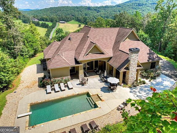 Experience refined mountain living in this five-bedroom custom-built home, perfectly positioned in the heart of the Aska Adventure Area. Showcasing timeless architecture, detailed custom millwork, and a warm, inviting design, this residence blends rustic charm with modern elegance. Set on over 4.5 acres, the property offers unmatched privacy while capturing sweeping views of the mountains and the rolling pastures of Aska Farms. Expansive windows and open living spaces frame the natural beauty, filling each room with light and serene views. The interior features thoughtfully designed living areas anchored by cozy fireplaces, a chef's kitchen ideal for entertaining, and spacious bedrooms that offer comfort and seclusion for family and guests alike. The home is being sold furnished, ready for its new owners to start enjoying immediately. Step outside to your own private retreat-an expansive covered patio with fireplace overlooking a sparkling pool. Whether you're gathering with friends, enjoying a quiet morning, or relaxing at sunset, the outdoor living spaces create the perfect setting. Despite its tranquil seclusion, this estate offers the convenience of all-paved access and is less than five minutes from the boutiques, dining, and charm of downtown Blue Ridge. Here, you'll enjoy the best of both worlds-extreme privacy with quick access to town and endless outdoor adventure right at your doorstep. A rare opportunity to own a private mountain estate that embodies timeless design, elevated outdoor living, and one of the most coveted locations in North Georgia.