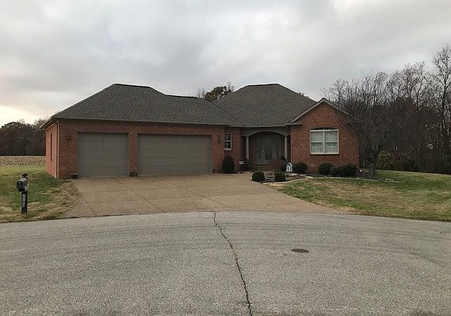 Awesome all brick home located in the St. Wendel area. Home is situated on 1.22 acres on a quiet cul-de-sac with a tree lined back yard and a field to one side. There is an invisible fence for your family's pet. It has a spacious three car garage which is 752 sq ft. The main level is 2329 sq ft with a 403 sq ft bonus room. It has an open floor plan with split bedrooms. The cabinets throughout the house are custom made by the Amish. The master bedroom has a large walk in closet and an en suite bath with a shower unit and a separate soaker tub. The other two bedrooms share a hall bath. The bonus room has a walk in closet and could be used as a 4th bedroom. There is a three sided fireplace in the living area that can be seen from the kitchen, the dining room, and the living room. The columns and arches add a unique element to this home.