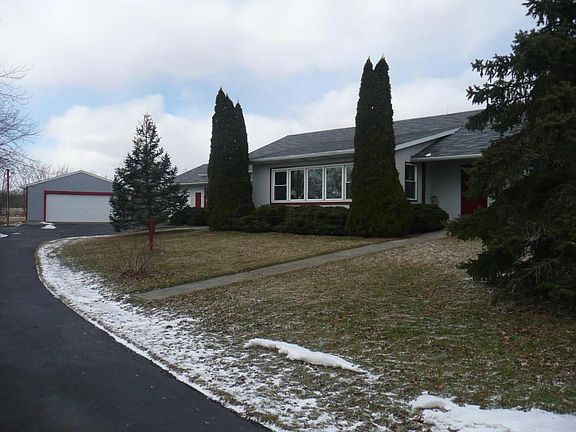 Beautiful country setting with 3+ acres, tree lined ashphalt driveway, wooded area, and multiple fruit trees and gardens! This 2000+ sq. ft. ranch offers a vaulted great room, 1st floor laundry/den, FULL basement, efficient geothermal heating/cooling, VERY spacious rooms with multiple windows throughout! Current dining room could be 3rd bedroom (complete with closet, door and windows). This UNIQUE home is also handicap accessible with a wheelchair ramp, handrails, wide doorways/hallways, grab bars, and a roll-in shower! Featuring a large heated workshop with attached 1-car garage area PLUS a spacious detached two car garage and storage shed! NEW ROOF and NEW carpet! ONE-OF-A-KIND!