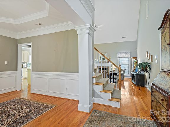 Beautiful home in a desirable Madison Ridge! The floors on the main level are predominantly onsite hardwood and prefinished hardwood. Sunny dining room has crown moldings, tray ceiling and wainscoting. The inviting living room has a vaulted ceiling and a beautiful mantle/fireplace. The remodeled kitchen has tile floors, lighting, new cabinets, Corian, SS appliances (range & microwave) and crown on the cabinets! A roomy, main floor primary bedroom has a deep tray ceiling with lots of crown molding. The Primary bathroom is all new with walk-in, oversized shower w/build-in seat, new vanity with big drawers, lighting, tiled floor, oversized shower w/seat! Don’t miss the huge closet! The powder room has wood floors, a cabinet/solid surface counter, chandelier and beautiful mirror. Upstairs are 2 bedrooms, a completely redone bathroom and a bonus/bedroom! The cozy sunroom has heat & A/C. Outside is a large deck and a beautifully landscaped yard.! No HOA! Union County Schools!