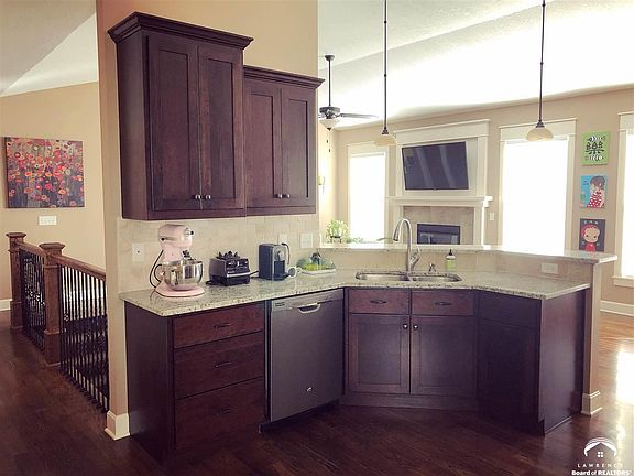 Quick access to KC & Topeka. Surrounded by Pat Dawson Billings Nature Reserve. Expansive views of fishing ponds, walking trails, & watching wildlife. On cul-de-sac & within walking distance to Sunflower, Southwest, Raintree & Bishop Seabury Schools. Beautiful hardwood floors throughout main floor, Lots of Natural light, Spacious Covered Patio for outdoor entertaining. Bright & open, vaulted ceilings, & spacious finished daylight basement, & 3 car garage. Mask mandatory Washer,Dryer, & Fridge Not Included!