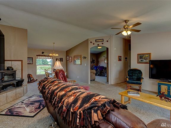 This is a great home for both people and horses. The well maintained house has an open floor plan, vaulted ceilings, a brand new roof and a view of the mountains to the north. The 3 bedrooms are spacious and nicely separated, with one of the full baths connected to the master bedroom. Its a wonderful horse property: well drained and cross fenced, with an arena in place. The barn covers all the outdoor needs with 4 stalls, large garage, wood space and large room overhead.