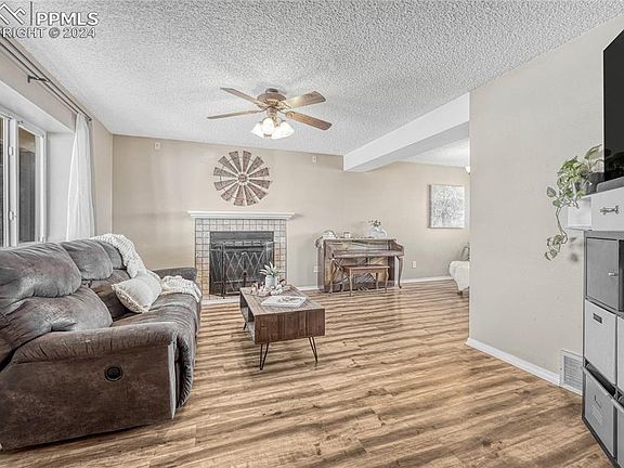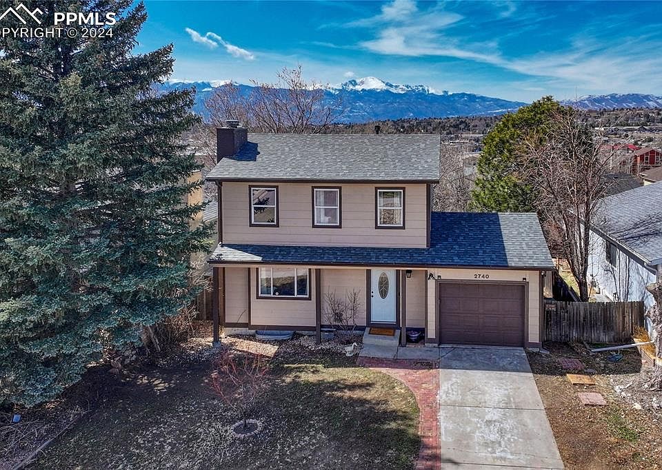 Step into this lovely 4-bedroom, 3-bathroom, 1-car garage home which is nestled across from a park and boasts awe-inspiring views of the majestic Pikes Peak Mountain from the backyard and all west-facing windows. This home is a beautiful blend of style, comfort, and convenience with a location that offers easy access to nearby amenities. Upon entering, you are greeted by an open, bright layout that exudes a welcoming ambiance. The home has been tastefully updated with durable and stylish vinyl flooring that adds a contemporary touch. The heart of the home, the living room, is enhanced by a wood-burning fireplace. This charming feature not only serves as a centerpiece but also adds a touch of elegance to the room, making it the perfect spot to enjoy cozy evenings with your loved ones. Past the living room, you will find a dining area with great views from the window. The dining room leads to the kitchen with walkout access to the fully fenced-in backyard! The backyard features recent landscaping upgrades, a storage shed, and a concrete patio. Moving upstairs, you will find a roomy master bedroom with even more Pikes Peak Views! The master features “his and hers” closets and an en-suite 3/4th bathroom. The upper level is completed by two additional roomy bedrooms and a full bathroom. Moving to the basement, discover a great place to gather with loved ones to watch a movie or play games. The family room features updated vinyl flooring and an adorable built-in cabinet. Off the family room, a fourth bedroom with an en-suite 3/4th bath is the perfect setup for a guest suite or home office. Don’t miss out on this awesome home that offers, views, space for the whole family, proximity to parks, and is near shopping and dining! Don’t miss out on this rare find!