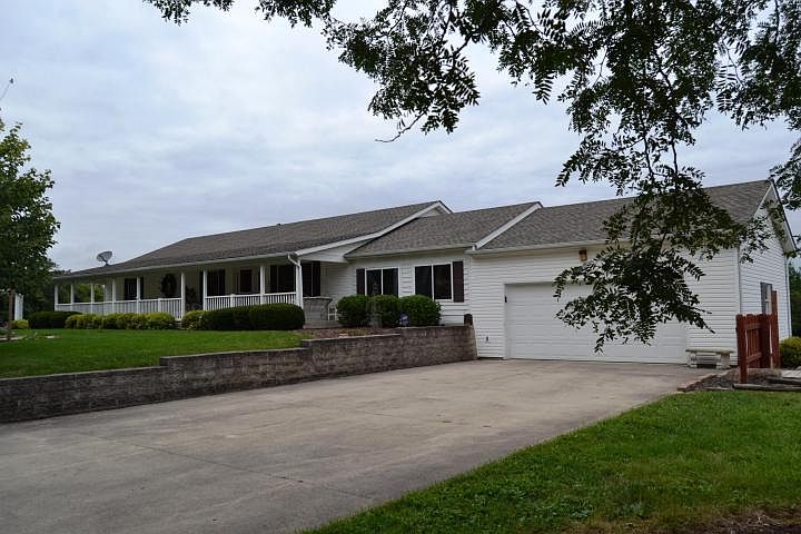 Custom Built Ranch with walk out lower level, sitting on 8 acres. Full front porch and rear deck. Family room, formal dining with fire place. Walk in pantry, 3 full baths. Lower lever has kitchenette, rec rm, storage rm. First floor laundry. New furnace 2014, New hot water gal heater 2016. Wildlife preserve behind home. Del-Co Water. Great opportunity, come see this today!