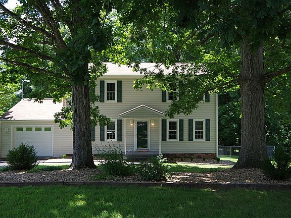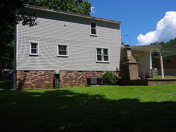 2 story house with attached garage 3 bedrooms with bonus room for office, playroom or additional bedroom 2 full bath/shower Upstairs laundry closet (working washer and dryer included in sale) Eat in kitchen/dining area (all appliances working and included in sale) Den with fireplace/wood stove insert New vinyl plank flooring on entire 1st level and in upstairs bathroom Upstairs bedrooms with oak hardwood floors Newly painted walls and ceilings throughout house Attached single car garage Large fenced in back yard Patio with fireplace and custom-built cabinet for television 16x16 enclosed shed 14x30 carport Schools include Evergreen Elementary Swift Creek Middle Clover Hill High School Within minutes of retail stores and restaurants but nestled in a quiet child friendly neighborhood near cul-de-sac Average electric bill/140.00 month Average water bills/80.00 every other month