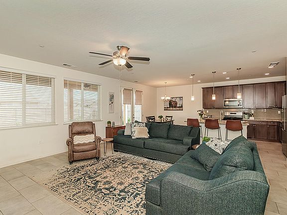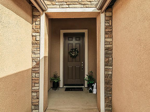 Open House -Sat. 3/1, 11-2 pm Only 2 Years New with paid for solar. This beautiful 4-BR, 2-BA sits on a corner lot with landscaping front and back. Backyard includes a large covered patio, lots of grass for kids to play and dog run for your pets. You enter this beautiful home on tiled floors that continue throughout the living areas, hallways and baths. It's a wonderful open floor plan to living room, dining and kitchen. Gorgeous granite countertops in kitchen with stainless appliances and undermount sink. Master bedroom is located at North end of home. Master bath includes large soaking tub, tiled shower and large vanity with 2 sinks. The walk-in closet does not disappoint. At opposite end of the home are 3 additional bedrooms and a hall bath with granite countertop, 2 sinks, and private tub shower area. It's like buying new with all the bells and whistles in place!
