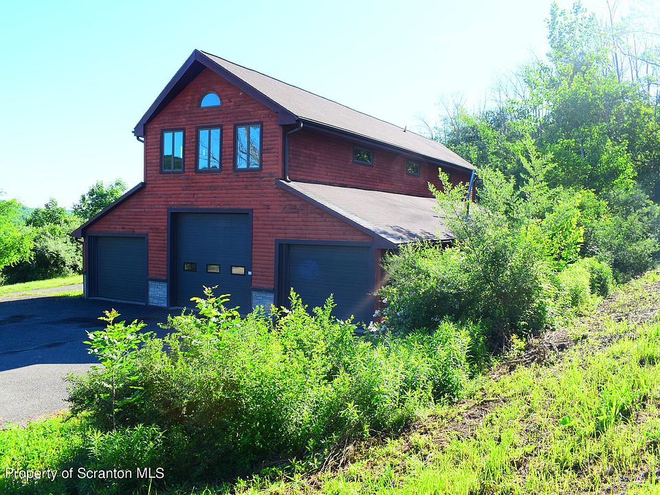 This property is unlike what you have seen before, amble road frontage on 2 roads with a delightful & exciting 10 acres of land w/breathtaking views and fresh country air. Next up is the pond for relaxation & enjoyment and only minutes away from State Game lands. Property contains a log sided commercial building last used as showroom for log home builder with tons of space inside. Can be used as workshop, storage for trailers, boats and more, 2nd floor finished off with bathroom, offices; or use as bedrooms, 2 conference rooms, or use as living and kitchen. Views from all around on 2nd floor, paved parking and driveway, well and septic. A property to use your thinking cap on or let me help you. Building has plenty of storage space and 4 overhead doors, 3 front, one in rear. Propane FHA heat.
