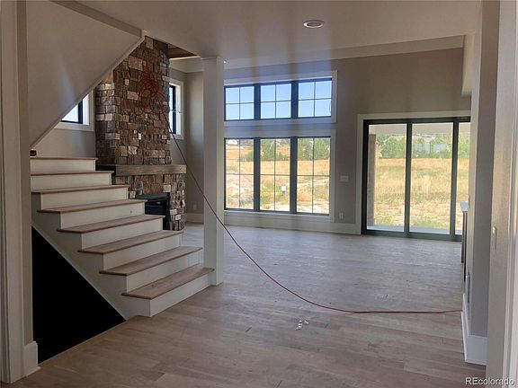 MOVE IN READY! A darling European modern country home with covered front porch, triple dormers, rounded front door, stained wooden posts, charming shutters and more, the Percheron is the first French Country design in Fox Hill! A true custom design-build by TM Grace Builders, Inc., the Percheron features 5 bedrooms, 4 bathrooms, upstairs laundry rooms, main floor study/secondary bedroom, a main floor master suite option perfect for working at home or for multigenerational living with details and intrigue wrapped into a methodically designed cozy and custom home. Enter the home and be greeted by a formal dining room with views of the front range, a dedicated office, vaulted great room and a custom kitchen with extended bar for breakfast nook seating. All of this with access to your covered back porch with views of the beloved Fox Hill Farm. A main floor master suite option is welcomed by a private entrance from the covered front porch with a walk-in closet, and full en-suite bathroom. A perfect option for your guests or multigenerational living! Upstairs, a bright and cheerful loft landing, spacious master retreat, two additional bedrooms, a hallway bath and laundry room have been designed to maximize the views that Fox Hill with form and function in mind. This modern twist on French Country is a timeless classic design that has taken on a new twist with the charming tile and lighting selections throughout and built with the Fox Hill farm-to-table lifestyle in mind. This home is positioned on a corner lot of a cul-de-sac on 1.6 acres and has everything you are looking for views, privacy, steps to Fox Hill Farm and true custom home craftsmanship and design. The Percheron is a masterpiece!