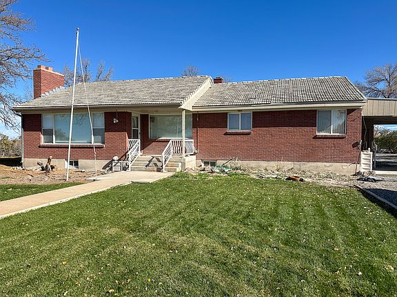Discover country living and plenty of space in this 6-bedroom, 2-bath brick home located in Sutherland, UT just outside of Delta. Set on three-quarters of an acre, this property offers room for horses, outdoor hobbies, and fun. Inside, you'll find updated flooring on the main level. There are two wood stoves, a furnace, and central air to keep you comfortable year-round. The kitchen offers ample storage space, while the large food storage room in the basement provides even more organization. Outside, enjoy mature trees, a carport for covered parking, and plenty of open space for animals and gardening. This property offers rural living and is just a short drive from town amenities. Square footage figures are provided as a courtesy estimate only and were obtained from Millard County . Buyer is advised to verify all information