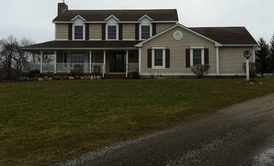 Bring your horses! Total privacy on over 11 acres, still close to town and expressway. Custom 4 bedroom 2.5 bath-open floor plan. 30x30 barn has water & electricity with pasture and outdoor riding arena. Clean non-smoking home ready to move in. Huge first floor laundry room (prior 5th bedroom/office).Newer carpet,fresh paint & neutral decor with hardwood floors in foyer and tile in kitchen/dining/baths. This one is a must see! Measurements approx.