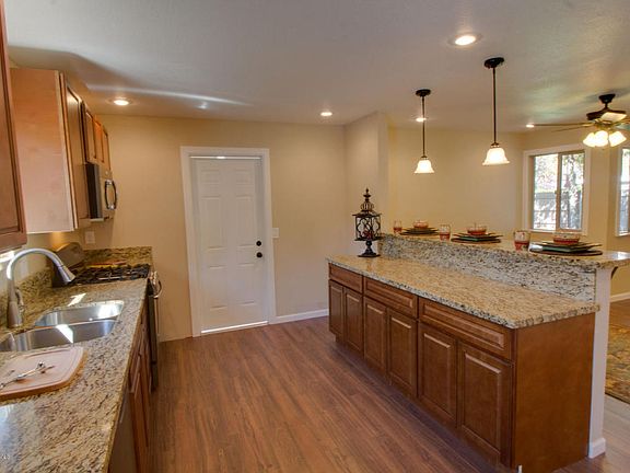 New EXTENSIVE REMODEL makes this home the perfect choice! Really great 3 Bedroom/1.75 Bath/2 Car Garage layout makes the home feel largely spacious, and it's ready to be enjoyed! Cool metal roof adds character and charm! New Laminate Flooring throughout, New Granite Countertops, New Cabinets & Appliances, Wood Burning Fireplace with recently completed 21 Point Inspection, Professional Landscaping on a Sprinkler System and Irrigation Drip, New Interior Paint, New Exterior Siding and Paint, New Can Lights and Lighting Fixtures, New Bathroom Vanities, Tile Shower and Tub Surround, and to top it all off, Fresh Concrete Driveway and garage floor. Click on the VIRTUAL TOUR in the ''Photos'' tab to see the 360 Degree spins! Agent is related to the seller.