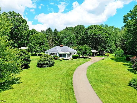 Are you looking for a little more room to roam? This expansive Bazetta Township property brings nearly 2.5 acres of lush, tree-lined yard combined with a three-bedroom home and an impressive number of outbuildings! A winding blacktop drive leads you up to the move-in-ready home where a relaxing sunroom greets you while containing the formal entryway. Further back, an attached two car garage includes a separate rear storage area, perfect for equipment or a personal workshop space. Additionally, a covered carport lends itself to an attached pergola deck for easy patio entertaining or use for a vehicle. Finally, the oversized rear garage can accommodate around 4 extra vehicles. At the rear of the home, a casual breezeway entrance brings mobility-friendly ramps to a kitchen entry point. Kick back and relax within the spacious living room and its bay-styled picture window that illuminates the fireplace on the far wall. Sculpted archways reveal the nearby dining room and adjacent kitchen; brightly lit and graced with an array of wooden cabinetry. Opposite the living room, a short hall ties the trio of colorful bedrooms together along with a substantial full bath with its low entry shower. Each bedroom is nicely sized and offers great closet space. Below, a full waterproofed basement allows for plenty of storage and endless possibilities. Updates include: vinyl replacement windows, roof 2009, furnace 2021, air conditioner 2018, hot water tank 2020, well pump 2021, chimney rebuilt 2023, driveway 2023, garage door 2018, gutter leaf guard system 2007, Ohio State Waterproofing in 2008, and so much more! Plus a one year home warranty!