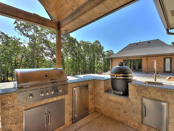 Transitional elegance can be found in this estate home located on over 2 acres of lush woods and a private pond.A cathedral ceiling greets you running through the main area of the home including the formal dining and living room with tremendous views of the outdoor kitchen,pond and swimming pool.The kitchen is open to the living room with a walk thru pantry, commercial appliances and dining area.A private primary suite awaits you with a sitting area with fireplace,his and hers toilets,dual closets with a washer and dryer hookup along with a vanity. 2 secondary en suite bedrooms are located on the main level.A stunning staircase leads you to a large bonus room with bar area and balcony along with 2 additional ensuite bedrooms.The laundry room features a desk nook area and a muddy paw spa making bathing Rover easy as can be.Feeling cramped?The guest house features a kitchen, laundry, living room and bedroom with a bathroom having pool access. Welcome Home!